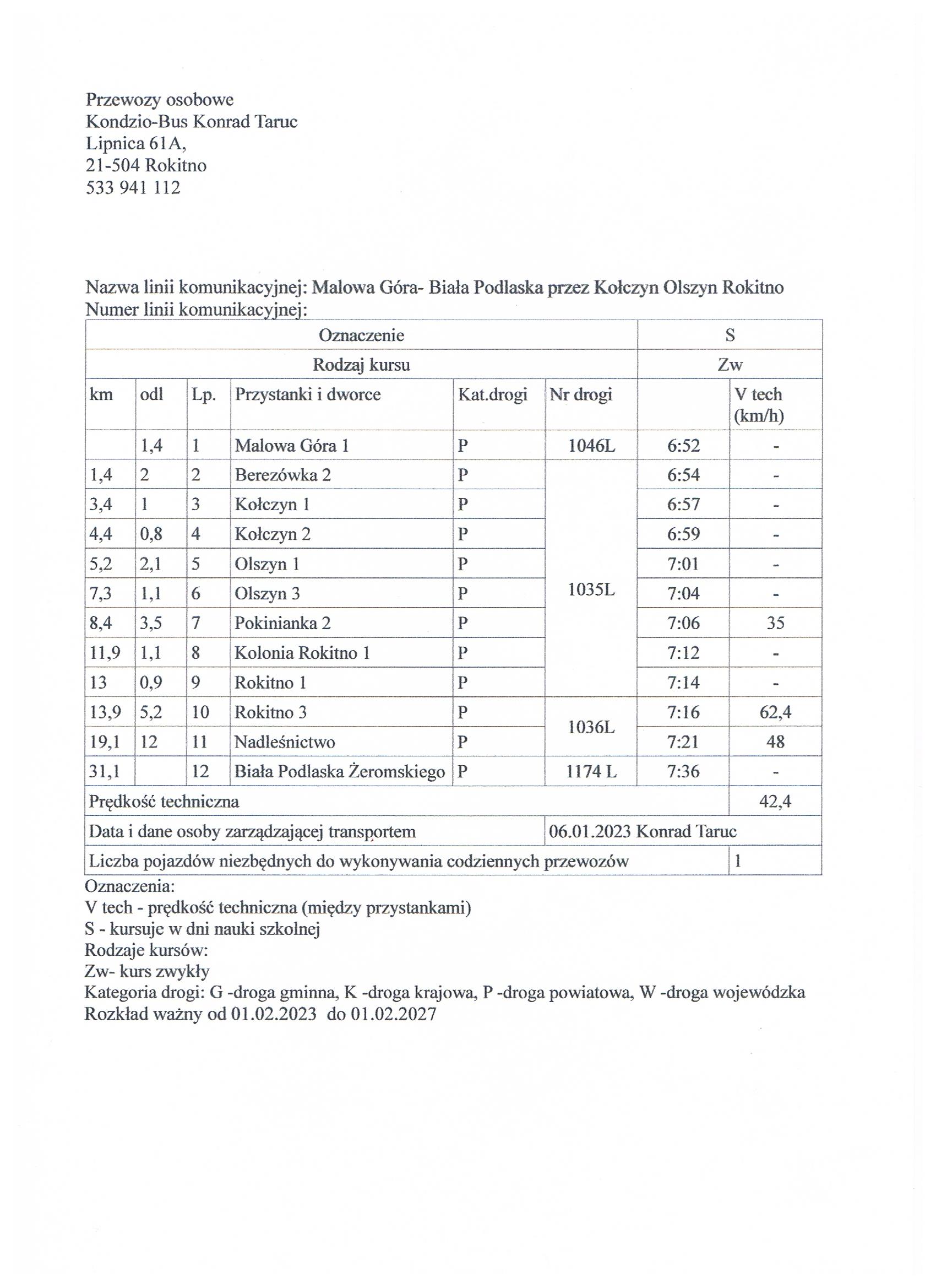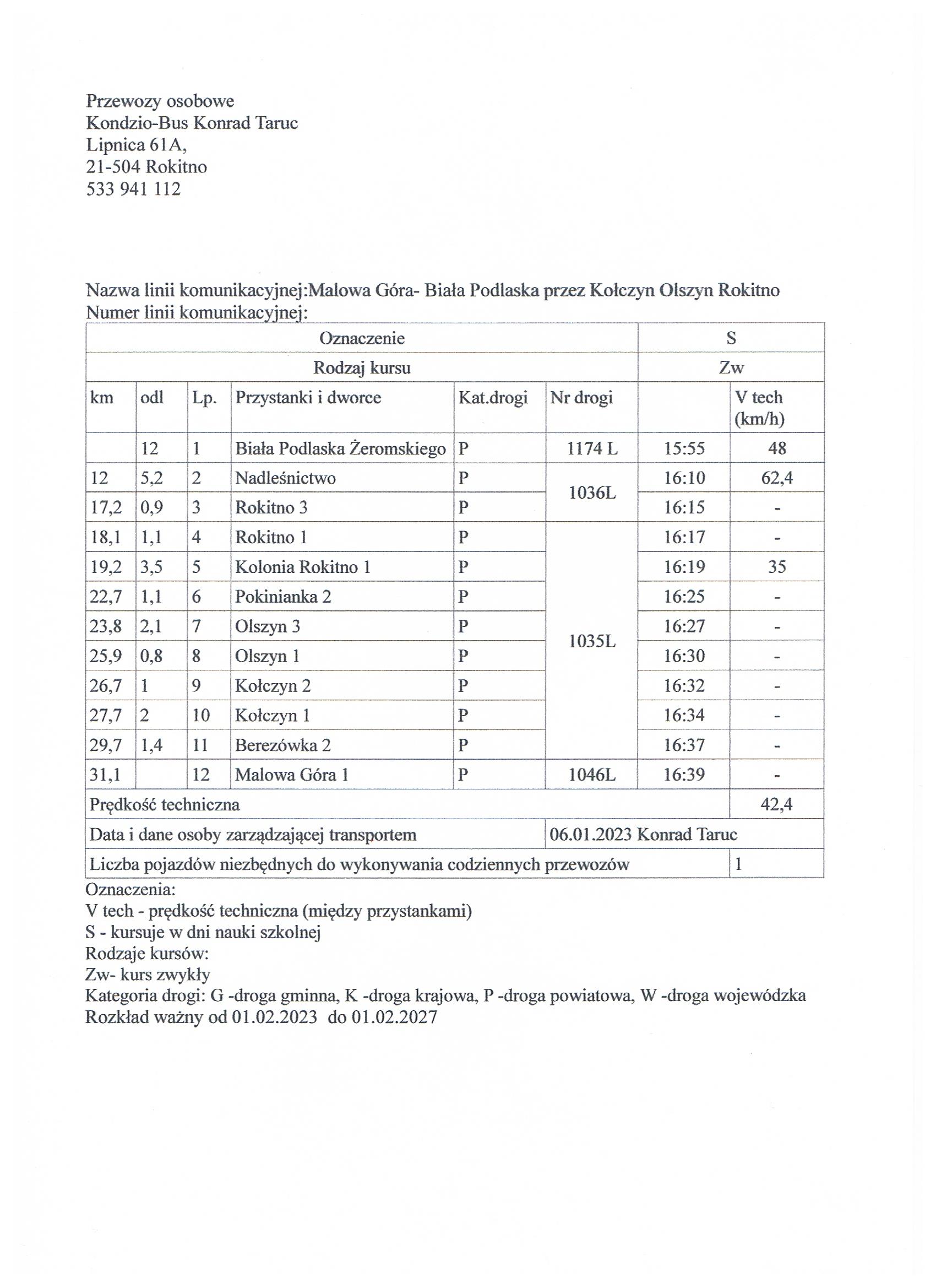 Strona główna/Aktualności/Rozkład jazdy autobusów Malowa Góra - Biała Podlaska