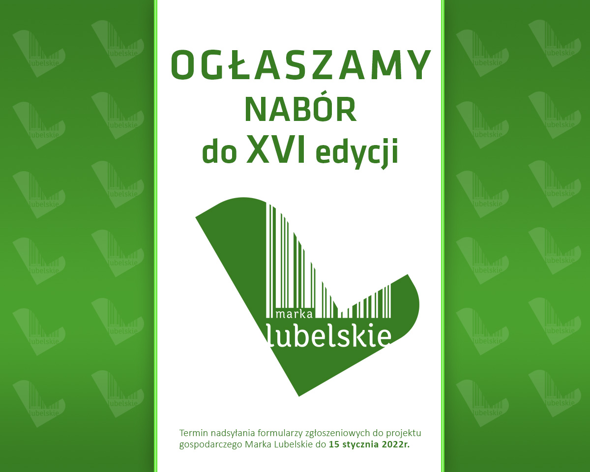 Departament Gospodarki i Wspierania Przedsiębiorczości Urzędu Marszałkowskiego Województwa Lubelskiego rozpoczął nabór do XVI edycji projektu gospodarczego Marka Lubelskie. Podstawowym warunkiem uczestnictwa jest prowadzenie działalności na terenie województwa lubelskiego, co najmniej od 24 miesięcy. Przystąpienie do projektu Marka Lubelskie jest bezpłatne. Przedsiębiorca może zgłosić swój udział poprzez dostarczenie, bądź wysłanie specjalnego formularza zgłoszeniowego do Departamentu Gospodarki i Wspierania Przedsiębiorczości Urzędu Marszałkowskiego Województwa Lubelskiego z siedzibą przy ul. Artura Grottgera 4 w formie papierowej, wysłać pocztą lub w formie skanu na adres: WYŚLIJ WIADOMOŚĆ. Do zgłoszenia trzeba dołączyć wyciąg z Krajowego Rejestru Sądowego lub zaświadczenie o wpisie do ewidencji działalności gospodarczej.