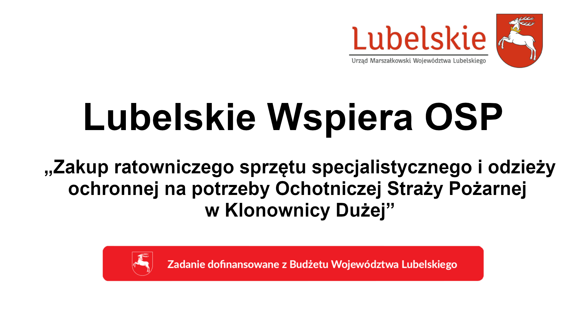 Lubelskie wspiera OSP Lubelskie wspiera OSP 6 zdjęć Banery - Lubelskie wspiera OSP Lubelskie wspiera OSP Zakup specjalistycznej odzieży i obuwia ochronnego: Ochotnicza Straż Pożarna w Zaczopkach Zakup ratowniczego spzętu specjalistycznego i odzieży ochronnej: Ochotnicza Straż Pożarna w Rokitnie Zakup specjalistycznej odzieży i obuwia ochronnego: Ochotnicza Straż Pożarna w Olszynie Zakup ratowniczego sprzętu specjalistycznego i odzieży ochronnej: Ochotnicza Straż Pożarna w Klonownicy Dużej Zakup lekkiego samochodu ratowniczo-faśniczego: Ochotnicza Straż Pożarna w Cieleśnicy